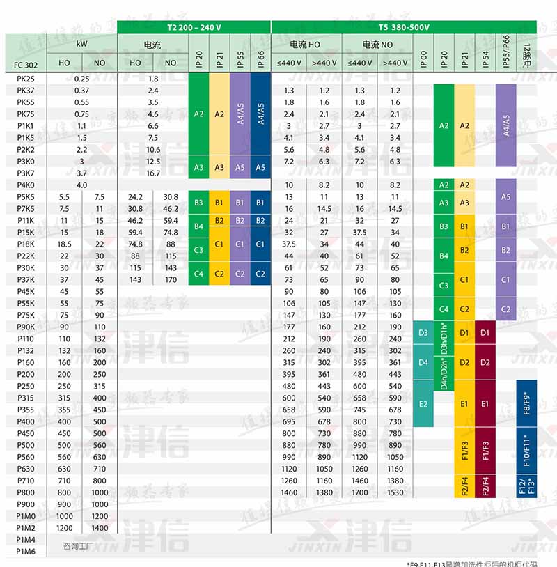 丹佛斯FC302變頻器的功率范圍和型號如下:
