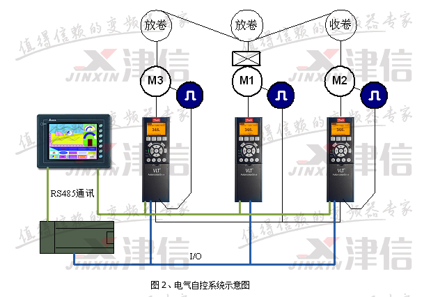 M2為收卷輥,中心卷繞,直徑逐步變大,由一臺FC302驅(qū)動,提供收卷張力。